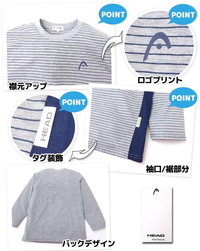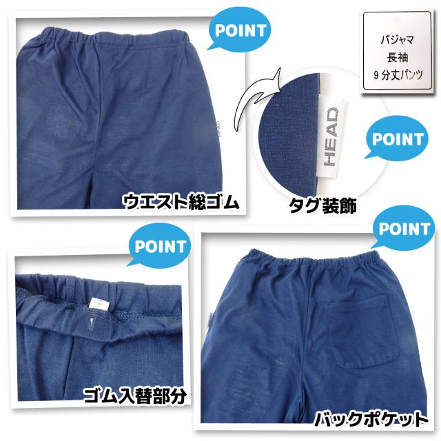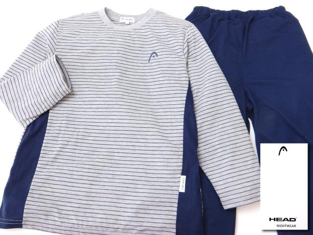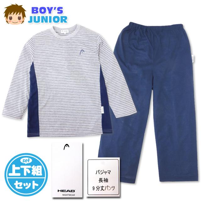 【送料無料】男児 ジュニア HEAD/ヘッド 長袖 パジャマ 上下組 ボーダー柄 天竺素材 9分丈パンツ ウエストゴム取替口付き 子供服 男の子 140cm 150cm 160cm td-0034a【メール便対応】