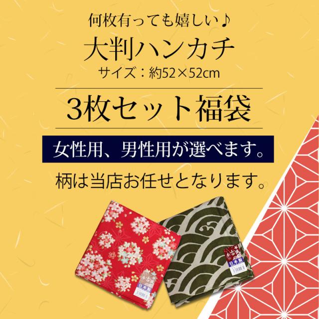 ハンカチ 大判ハンカチ 和柄 3枚セット 福袋 日本製 2022年 かわいい 花柄 女性用 男性用 おしゃれ レディース メンズ まとめ買い 綿100% 送料無料 k_name
