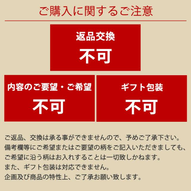 備考欄等にご希望またはご要望の柄をご記入いただきましても、ご希望に沿う柄はお入れすることは一切致しかねます。