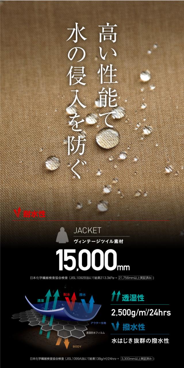 ・驚異の耐水・撥水力!高い耐水性能で雨雪などの水の侵入を防ぐ