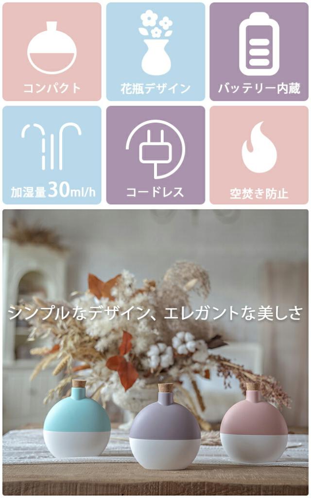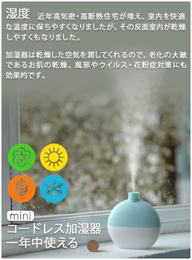 mini コードレス 加湿器 卓上加湿器 アリビオ Alivio 卓上 送料無料 オフィス 小型 おしゃれ かわいい USB 充電式 静音 バッテリー内蔵 ミスト 空焚き防止 ウイルス対策 持ち運び デスク コンパクト ミニ 乾燥 プレゼント