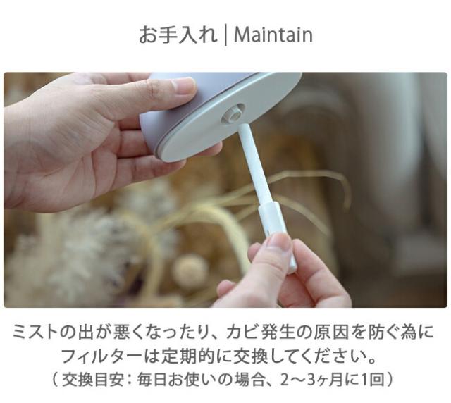 | 使用上の注意点 | ・本製品をお使いになる前に取扱説明書をよくお読みの上、正しい方法でお使いください。 | ・防水仕様ではありません。故障の原因となりますので、本体を濡らさないようご注意ください。 ・水道水以外の水(お湯も含む)を入れないでください。製品に損傷をあたえる可能性があります。 ・アロマ対応ではありません。 注意事項 | ※沖縄県・離島の場合は別途送料が必要となります。 | ※実際の商品の色にできるだけ近づけるよう撮影を行っておりますが、ご使用のモニターにより実際の商品の色や明るさと異なって見える場合がございます。 予めご了承ください。 |