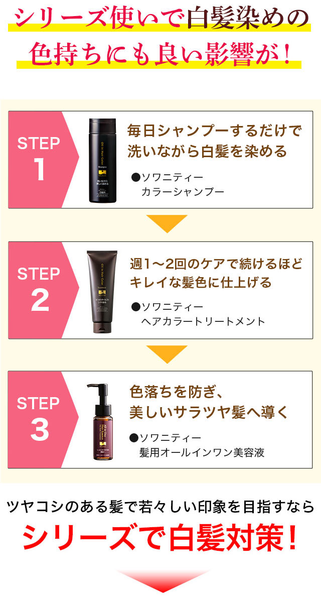 ソワニティー カラーシャンプー 200ml 3本 選べる2色 白髪染め 白髪用 シャンプー お得 セット