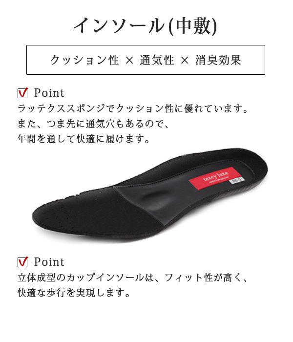 ![]() ![]() ![]() ![]() ![]() ![]() ![]() ![]() ![]() ![]() ![]() ![]() ![]() ![]() ![]() ![]() ブランド:texcy luxe テクシーリュクス 商品名/品番:[TU-7009]プレーントゥ [TU-7010]ストレートチップ [TU-7011]ヴァンプ 素材:アッパー:天然皮革、アウトソール:合成底 ワイズ(横幅):ゆったり幅広3E(EEE)相当 靴の詳細:(26.0cm採寸) ソール高:約 3.0cm 履き口までの高さ:約 10.5cm(ソール部分も含む) 重量:約 326g カラー [TU-7009]ブラック [TU-7010]ブラック [TU-7010]ブラウン [TU-7011]ブラック おすすめのサイズ 細身、普通の方→「標準サイズ」 甲高、幅広の方→「0.5cm大きめ」 こちらのアイテムの足入れは一般的な革靴と同じです アシックス商事が開発したビジネスシューズ。本革使用の本格ビジネスシューズなのに、スニーカーのような履き心地の快適紳士靴です。 天然皮革を使用しているので上品で高級感ある一足に仕上がっています。 プレーントゥ、ストレートチップ、ヴァンプの3タイプから選べるので、幅広いシーンで活躍します。 納期について 当商品は入金確認後、5営業日以内に発送される商品です。 ご了承くださいませ。 |