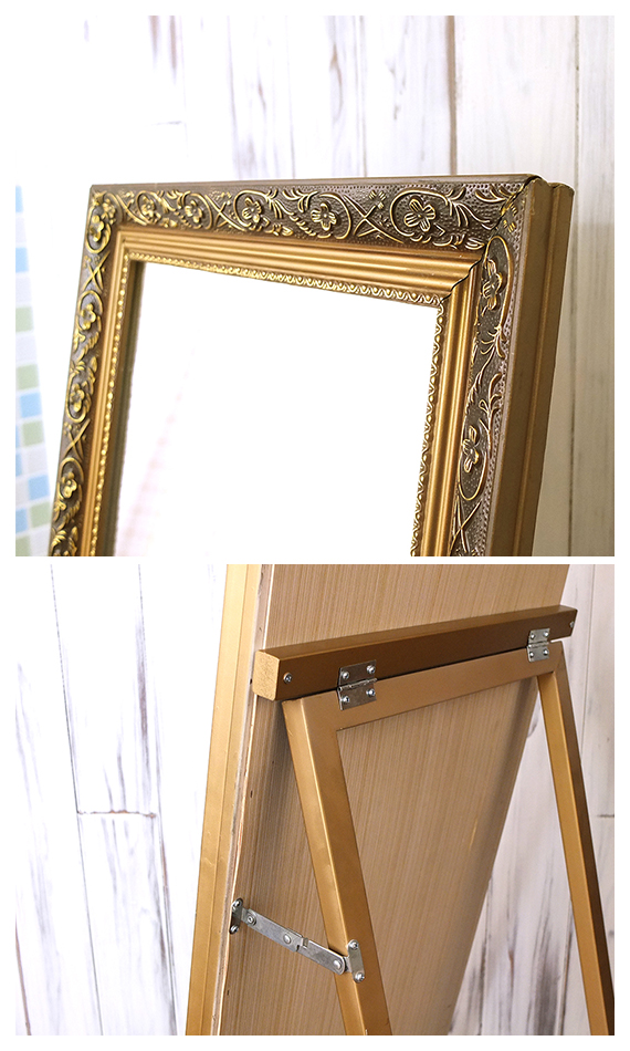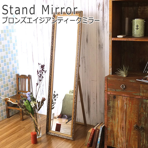 ブロンズエイジアンティークミラー (スタンドミラー 姿見 鏡 立て掛けミラー 全身 アンティーク レトロ ブロンズ 高級感 エレガント ガーリー 女の子 可愛い おしゃれ おすすめ)