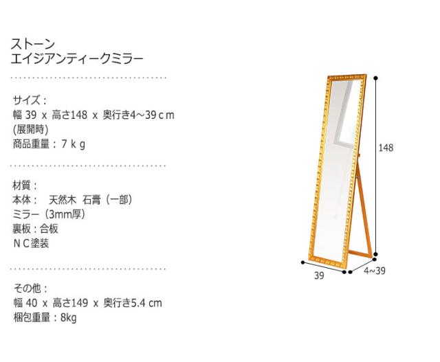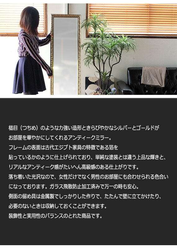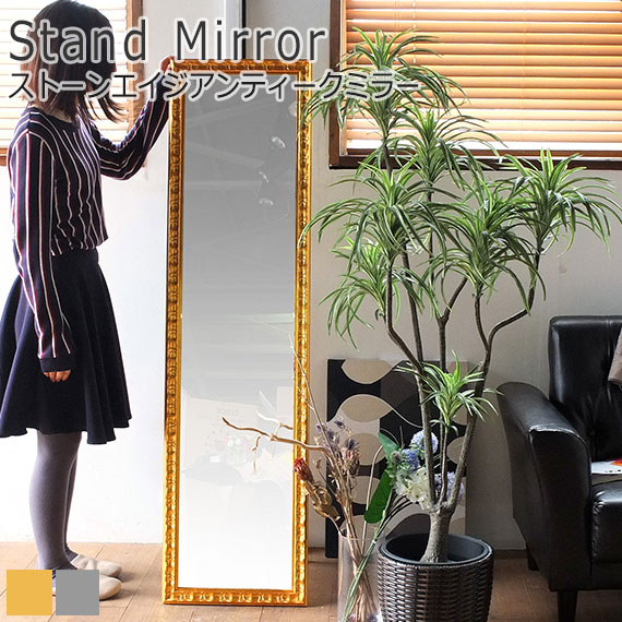 ストーンエイジ アンティークミラー (スタンドミラー 姿見 鏡 立て掛けミラー 全身 アンティーク レトロ ゴールド シルバー 高級感 エレガント ガーリー 女の子 可愛い おしゃれ おすすめ)