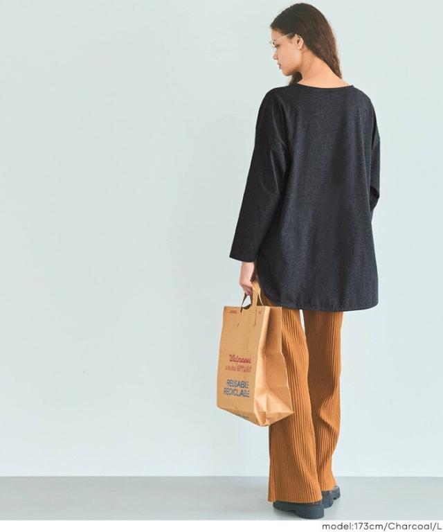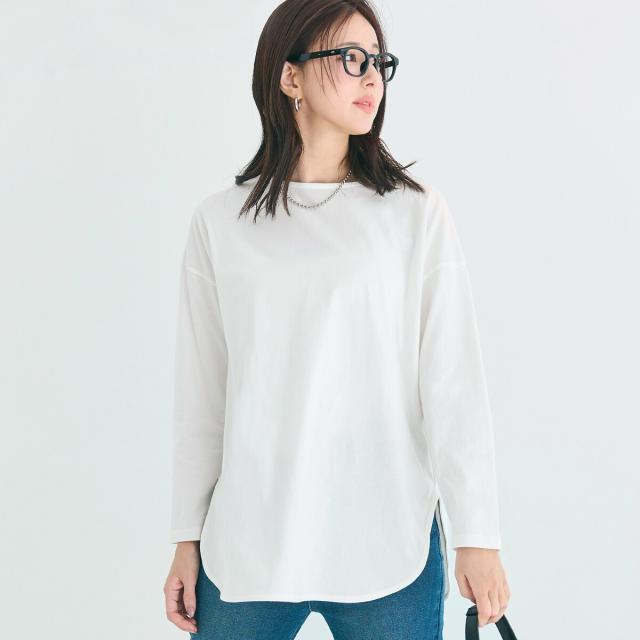 やや浅めのボートネックデザインが、デコルテラインをすっきりと見せてくれます。