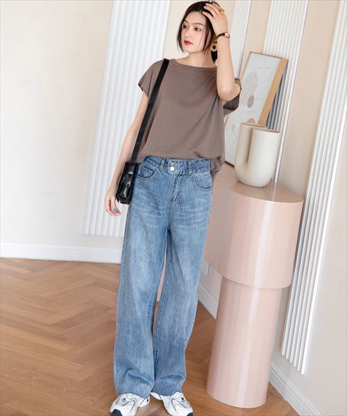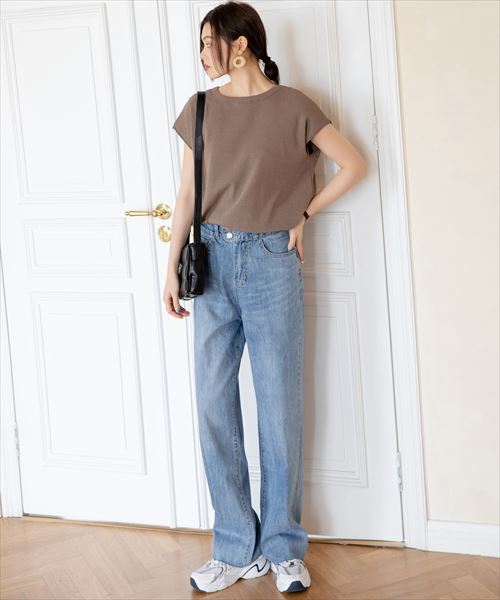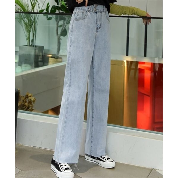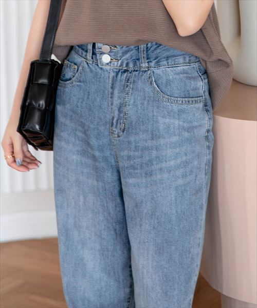 レディース カットオフストレートデニムパンツ