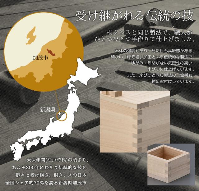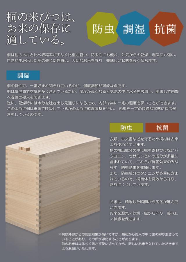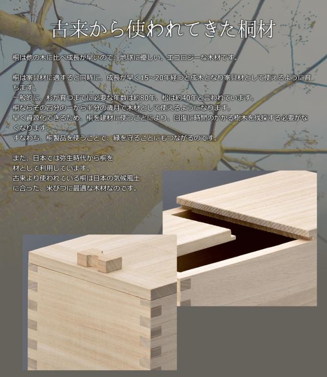 【桐米びつ 20kg】 米櫃 桐製 一合枡付き 一合升 マス キッチン用品 調理器具 保存容器 保管 収納 ライスストッカー ライスボックス おしゃれ 国内製造 防虫 調湿 抗菌 栗山物産 燕三条