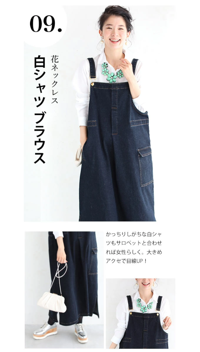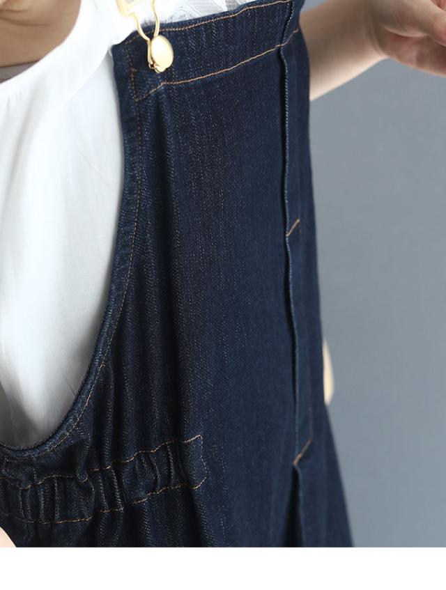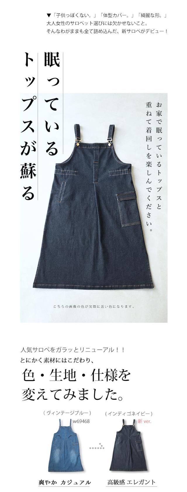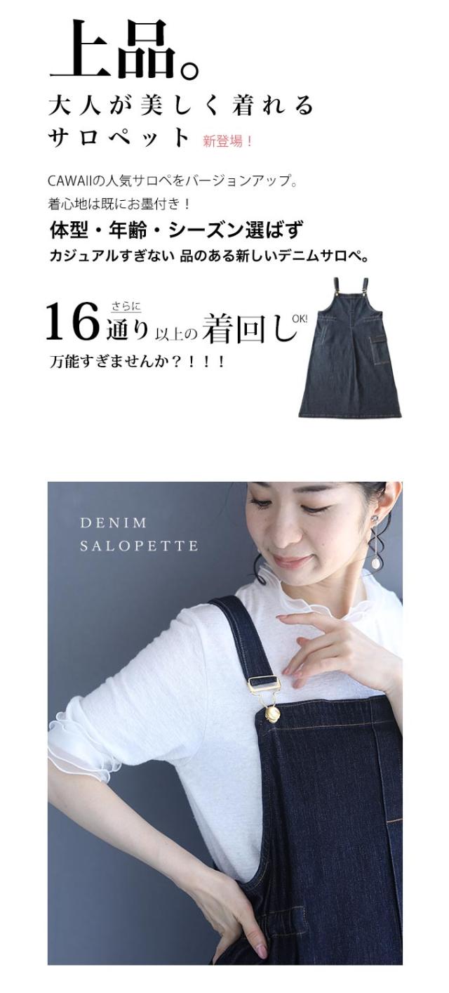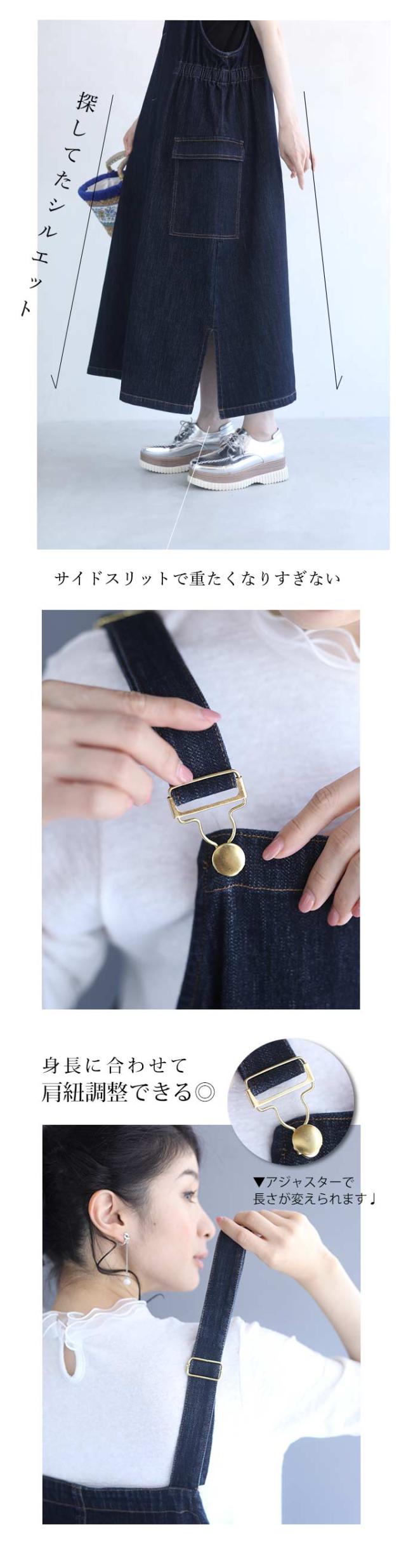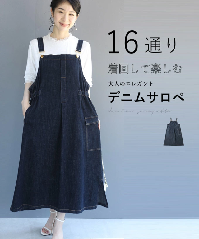再入荷11月19日 16通り着回して楽しむ 上品デニムサロペットワンピース fbr00009 cawaii デニム サロペット ワンピース ロング 伸縮 体型カバー シルエットカバー 無地 カジュアル 通勤 きれいめ ミセス 母の日