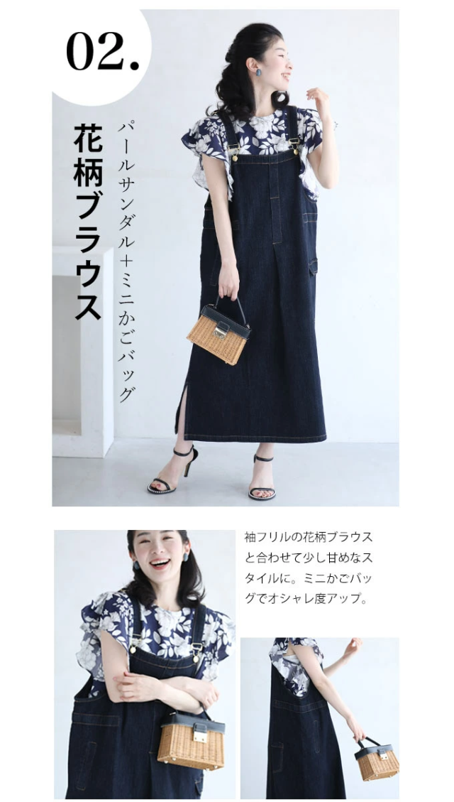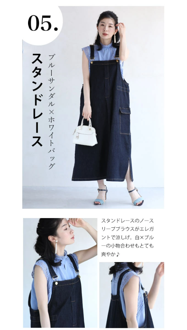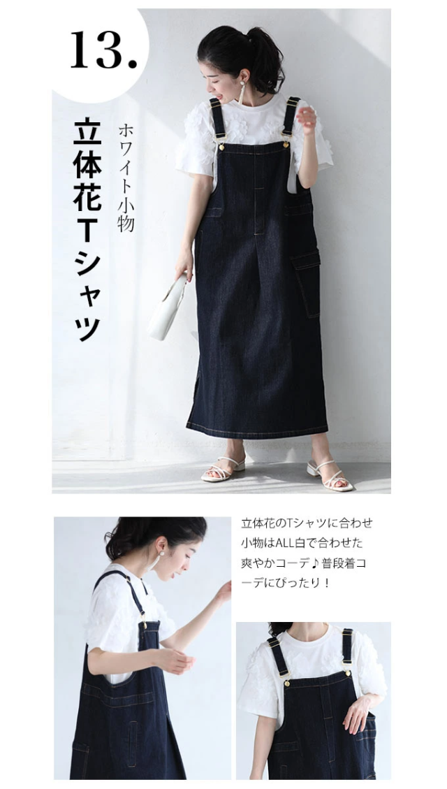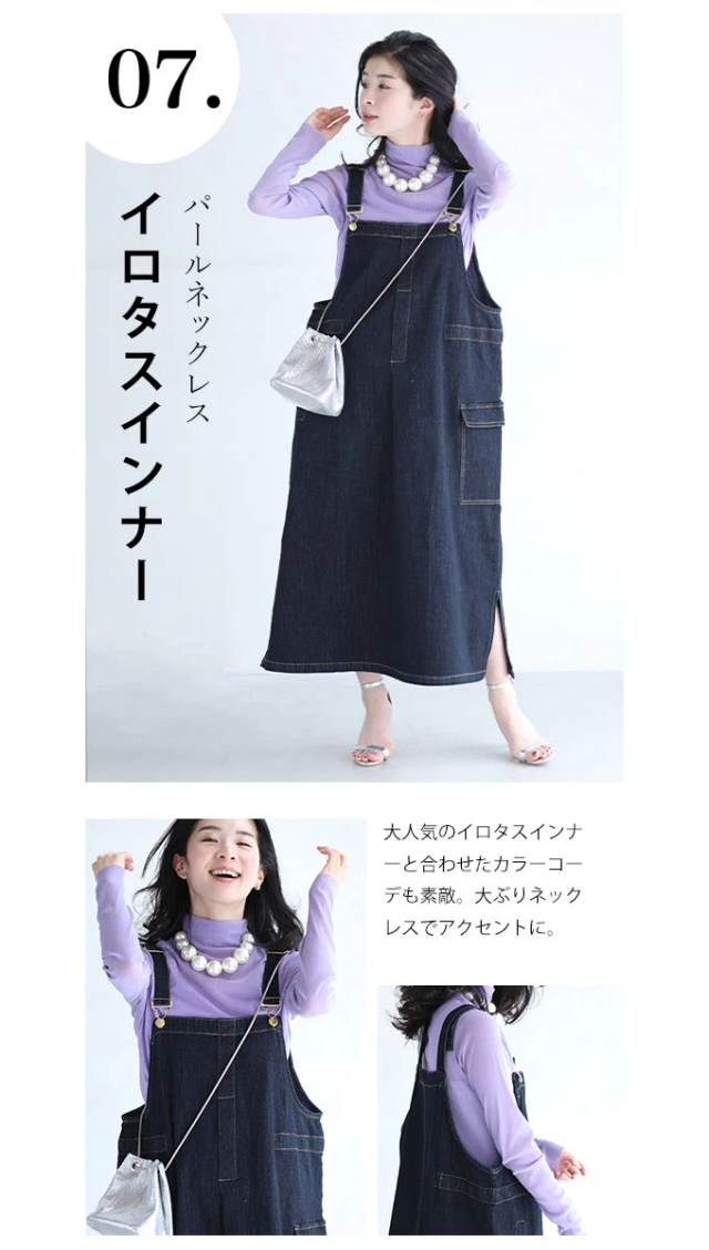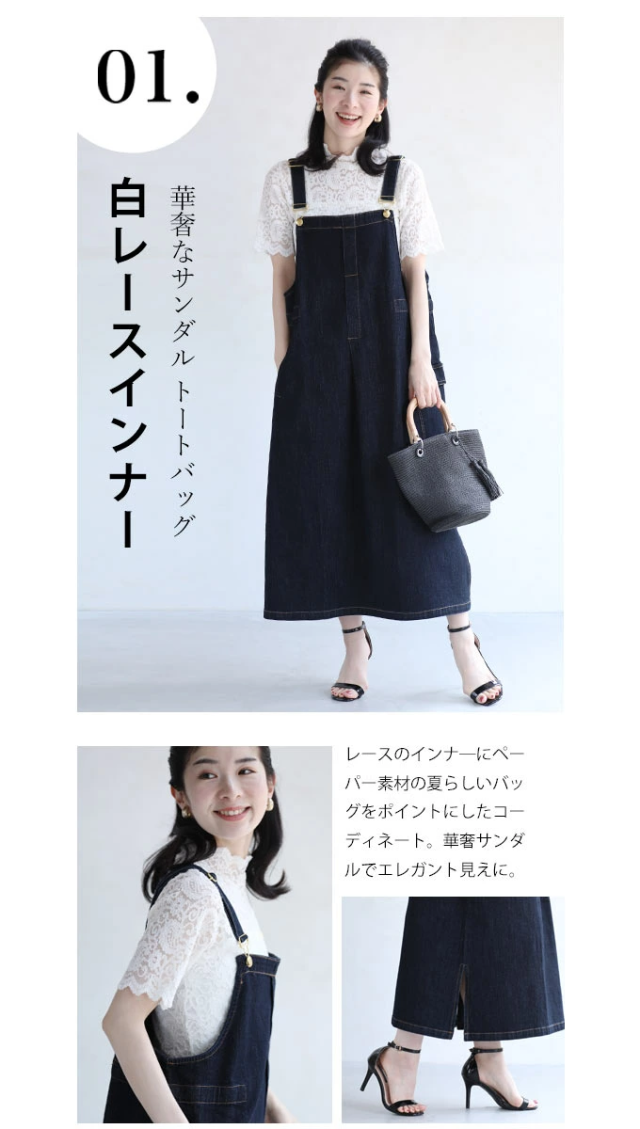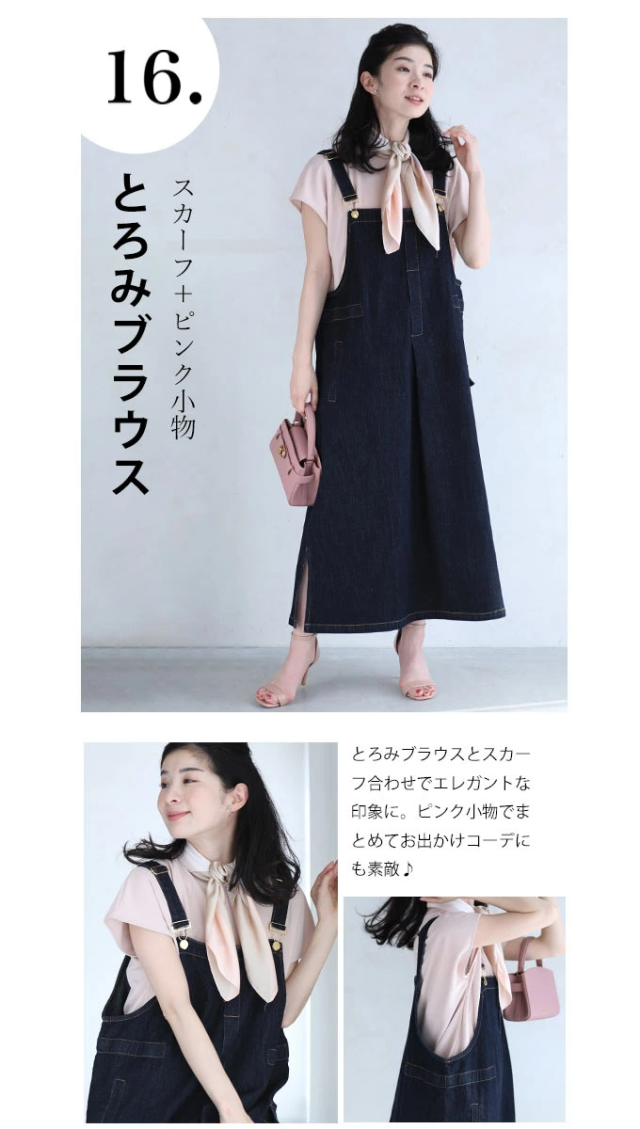 再入荷11月19日 16通り着回して楽しむ 上品デニムサロペットワンピース fbr00009 cawaii デニム サロペット ワンピース ロング 伸縮 体型カバー シルエットカバー 無地 カジュアル 通勤 きれいめ ミセス 母の日