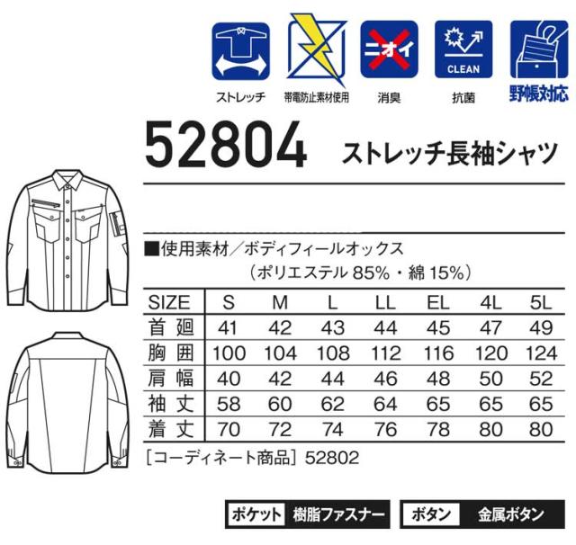 作業服 Jawin ジャウィン ストレッチ長袖シャツ 52804 秋冬 自重堂
