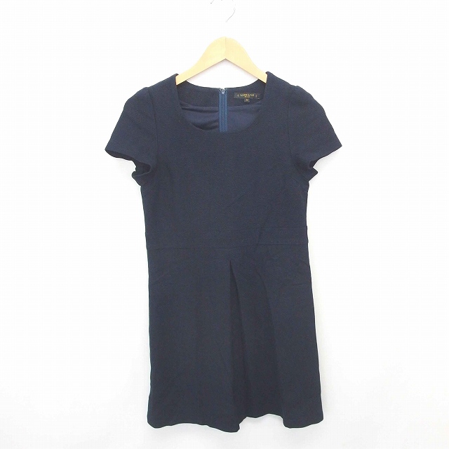 【中古】ラピスルーチェパービームス ワンピース 膝下丈 プルオーバー 丸首 バックジップ 丸首 半袖 36 紺 ネイビー