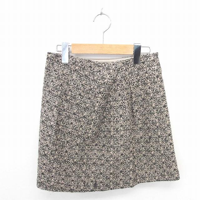 【中古】ノーリーズ Nolley's スカート 台形 ミニ ニット 総柄 サイドジップ ウール混 36 ベージュ ブラック 薄茶 黒