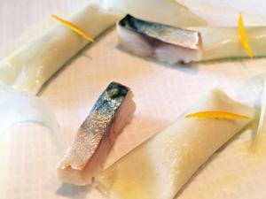 軽く燻製した鯖と、レモンの皮の香りが華やかに香る一皿。