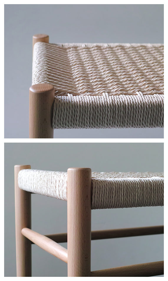 | 材質 | 本体:ヨーロピアンビーチ(ブナ材) 座面:ペーパーコード 表面:ウレタン樹脂塗装 |