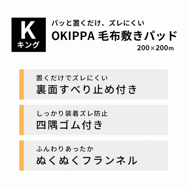 敷きパッド キング 200×200cm OKIPPA フランネル なめらか やわらか 毛布 毛布敷きパッド 洗える 裏面滑り止め