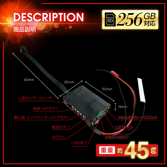 小型カメラ スパイカメラ Wi-Fi対応 4K高画質 暗視補正&人感検知録画機能搭載 覚醒した自由人の基板ユニットカメラ ABC-108SG