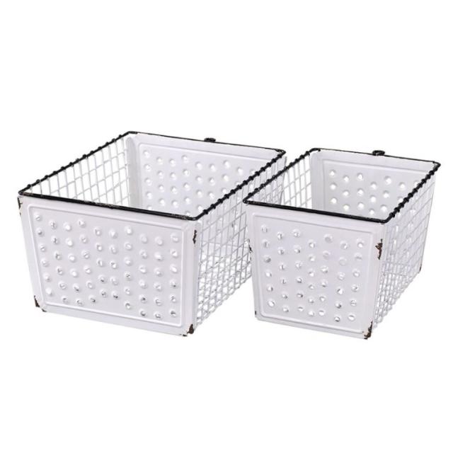 SPICE スパイス SPICE OF LIFE アイアンメッシュバスケット 2個セット ホワイト IVDN1339WH | インテリア かご ナチュラル スタイル ガレージライク 収納 ヴィンテージ風 お洒落 メッシュ アイアン バスケット