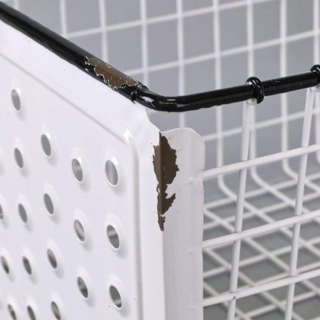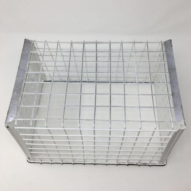 側面と底面がアイアンメッシュ、手前と奧面はパンチングの穴空き。