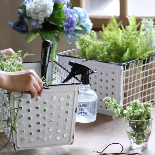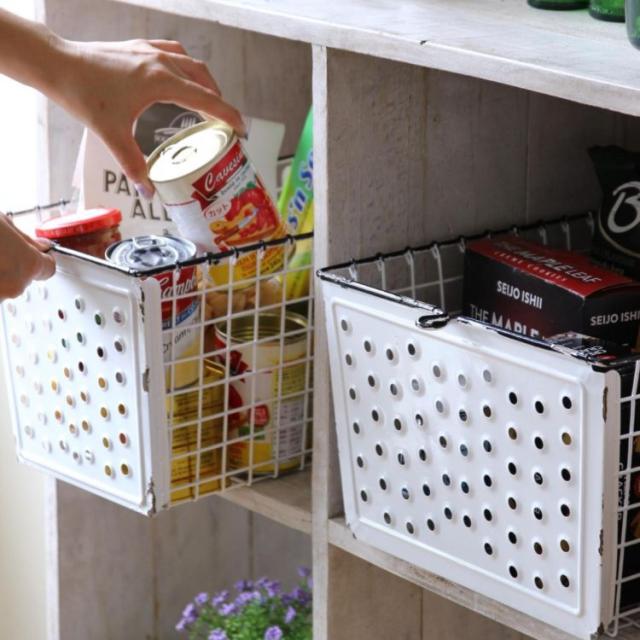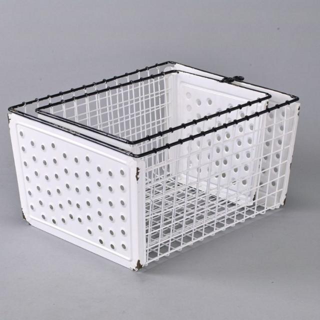 SPICE OF LIFE アイアンメッシュバスケット 2個セット ホワイト ナチュラルスタイルやガレージライクな空間の収納に ヴィンテージ風のお洒落なメッシュアイアンバスケット。 琺瑯風の白いペイントが優しい雰囲気を出しています。 タオルやリネン、雑誌等を収納するのにも使いやすいサイズ。 側面と底面がアイアンメッシュ、手前と奧面はパンチングの穴空き。 大きいサイズにはA4や雑誌が、小さいサイズにはB5が奇麗に収まります。 上部に1カ所フックがあり、タグなどを付けて整頓してもお洒落。 詳細サイズ:L : w405 d310 h205 1145g S : w350 d230 h200 860g 商品重量:2070g パッケージサイズ:w385 d315 h205 パッケージ重量:2070g 生産国:中国 素材:メタル 品番:IVDN1339WH ※画像はイメージです。 ※パッケージ、仕様、品番などの変更が予告なく変更される場合が御座います。 |