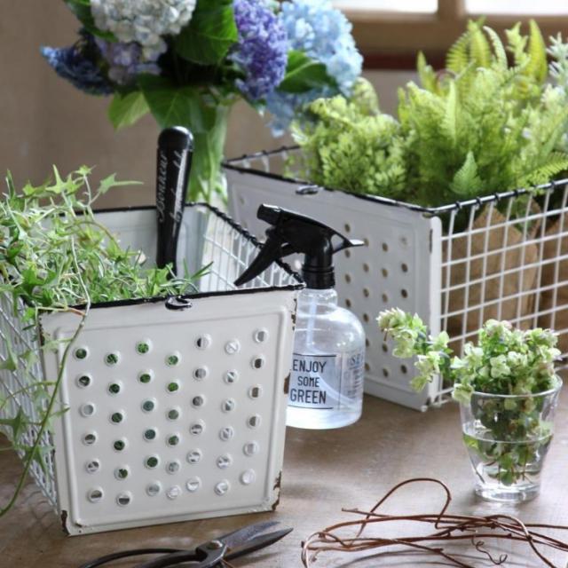 ヴィンテージ風のお洒落なメッシュアイアンバスケット。