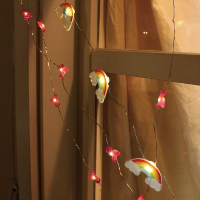 小さなレインボーの形が20球つながったLEDガーランドです。