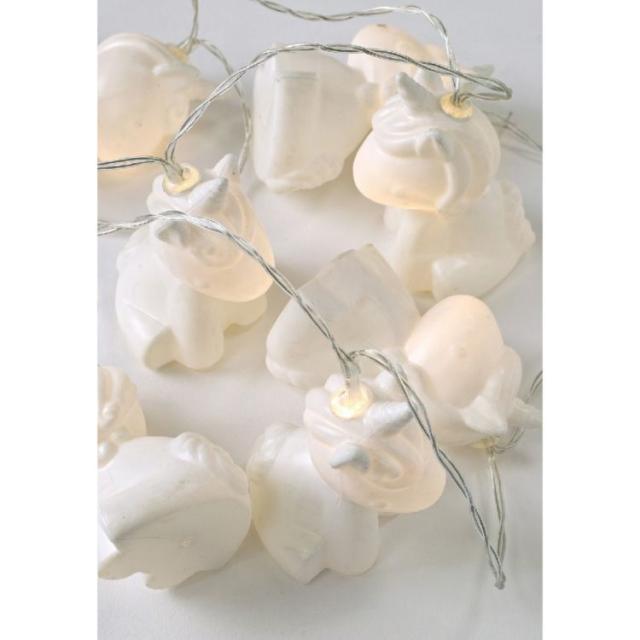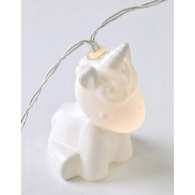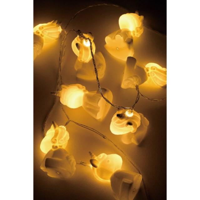 可愛いユニコーンの人形の中のLEDがウォームホワイトに光るガーランドです。