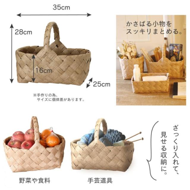 北欧風バスケットで温かみのある収納を ■まるで北欧の白樺かごのようなペーパー素材のバスケット。 ■ペーパーながら硬く丈夫にコーティング加工してあるので型崩れしません。 ■軽量なので高い場所への収納にも安心です。 ■キッチンやリビングの小物やブランケット、スリッパ等の収納に。 ■サスティナブルなライフスタイルに似合うバスケットです。 ■伝統的な手法でひとつずつ丁寧に作られています。 そのため大きさや厚みにも個体差がありますが、手作りならではの風合いをお楽しみ下さい。 商品サイズ:w350 d250 h280 詳細サイズ:本体の高さ : h160 商品重量:330g パッケージサイズ:w350 d250 h280 パッケージ重量:330g 生産国:中国 素材:紙 品番:ALLZ1050 手作りによりサイズに個体差がございます。 ※画像はイメージです。 ※パッケージ、仕様、品番などの変更が予告なく変更される場合が御座います。 カテゴリー |