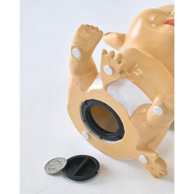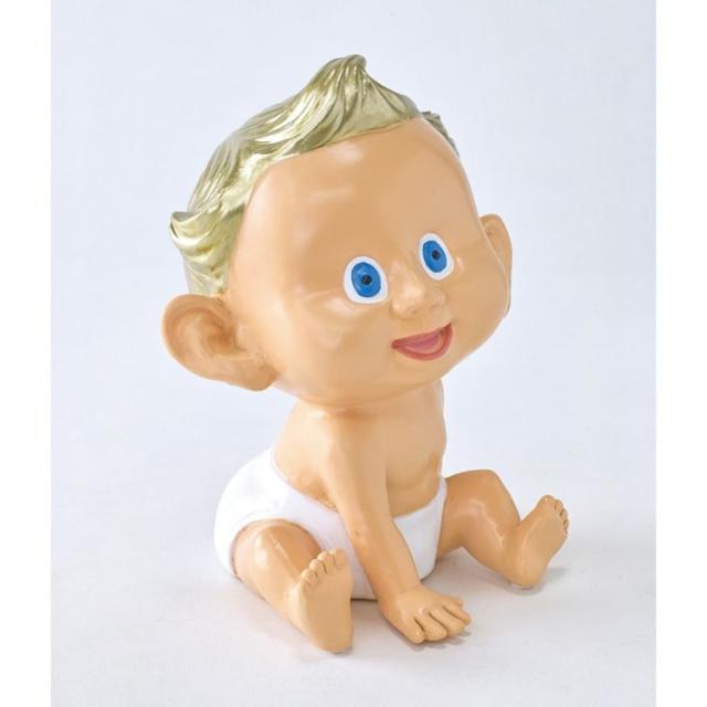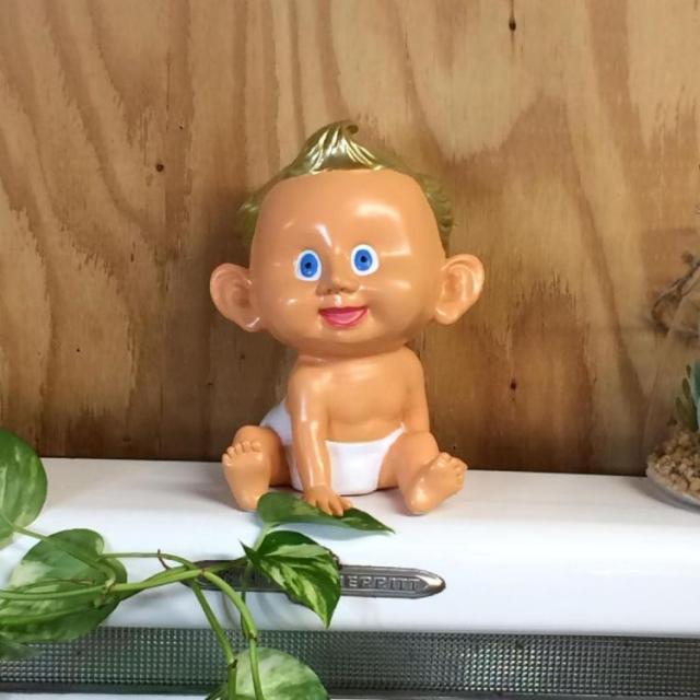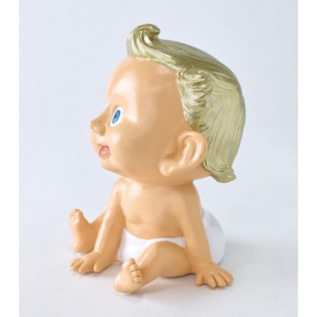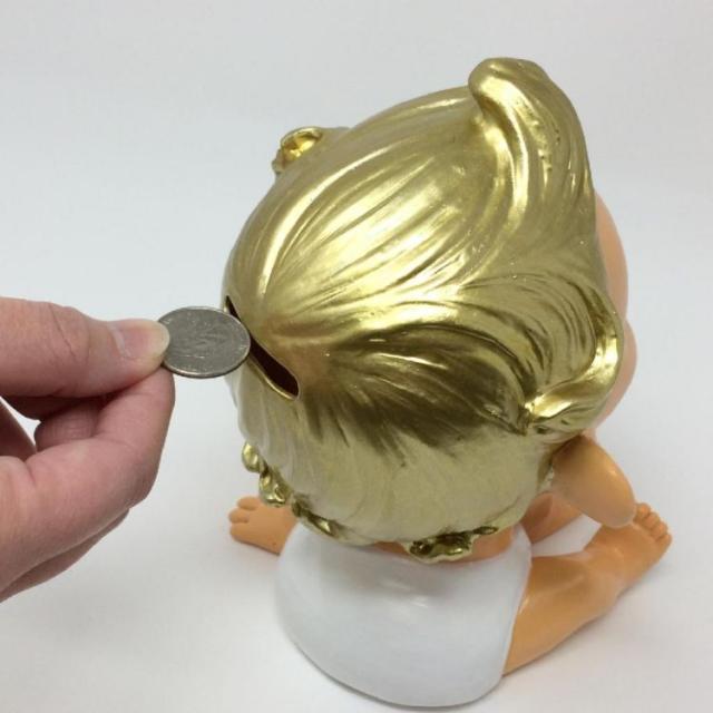 今にも動き出しそうな可愛いベビーの貯金箱。