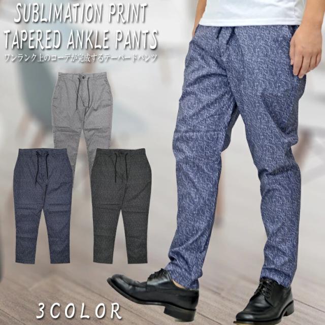【閉店セール】テーパードパンツ メンズ アンクルパンツ 昇華転写 70441 プリント テーパードパンツ テーパード スラックス アンクル丈 ジョッパーズ 杢調 リップストップ コンサバ ストリート系 ストレッチ ビジネス 通勤 グレー ネイビー ブラック キレイめ 大人M L LL