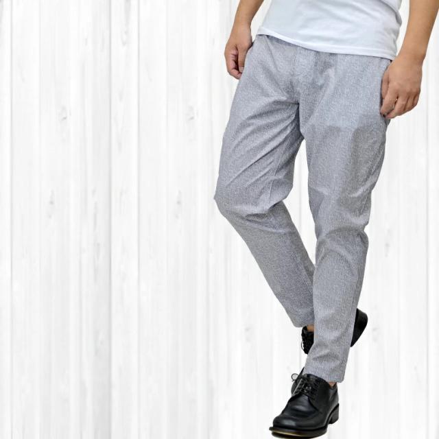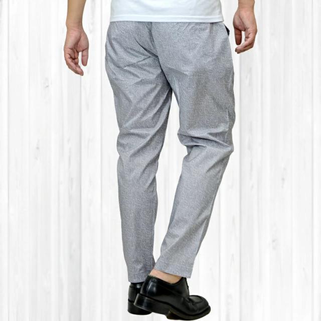 裾に向かってテーパードするスリムなシルエットが品のいいデザインで、スラックスとしても活用できます。
