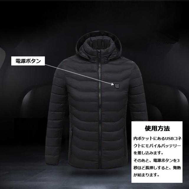電熱ジャケット メンズ アウター 冬 中綿ジャケット あたたかい 冬新作 中綿ダウンジャケット ヒートジャケット 電熱 ヒーター ジャケット ブルゾン 男女兼用 秋冬 あったか_b