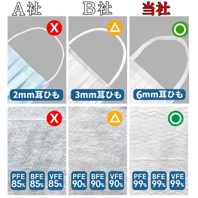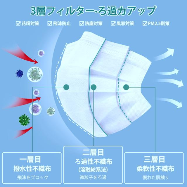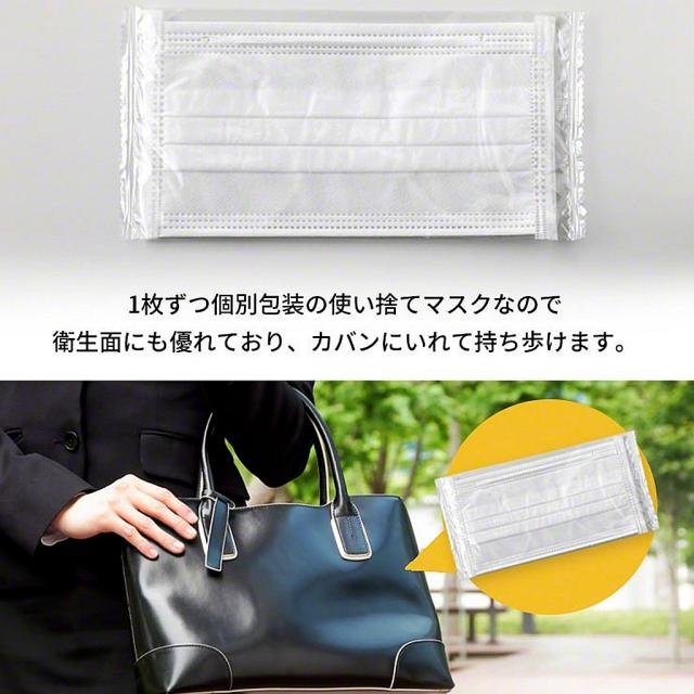 - 何回か購入していますが、安定の品質で1枚ずつの包装ですから、清潔で携帯にも便利です。 使用してから気がついたのですが、前回購入した分と少し違いが有ります。前回のマスクに比べて生地が薄くなり、耳紐も変...