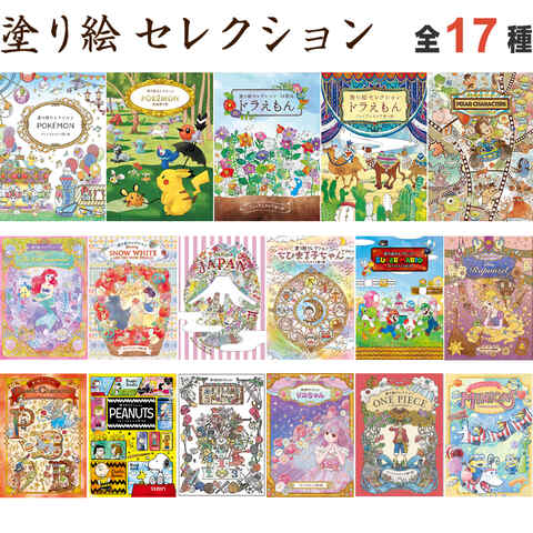 塗り絵セレクション 全17種 ポケモン/ドラえもん/ディズニー/プリンセス/ちびまる子ちゃん/マリオ/スヌーピー/ワンピース 送料無料