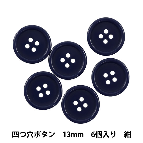 ボタン 『四つ穴ボタン 13mm 6個入り 紺 PYTD10-13』