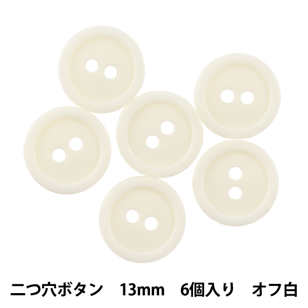 ボタン 『二つ穴ボタン 13mm 6個入り オフ白 PYTD20-13』