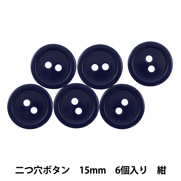 ボタン 『二つ穴ボタン 15mm 6個入り 紺 PYTD20-15』