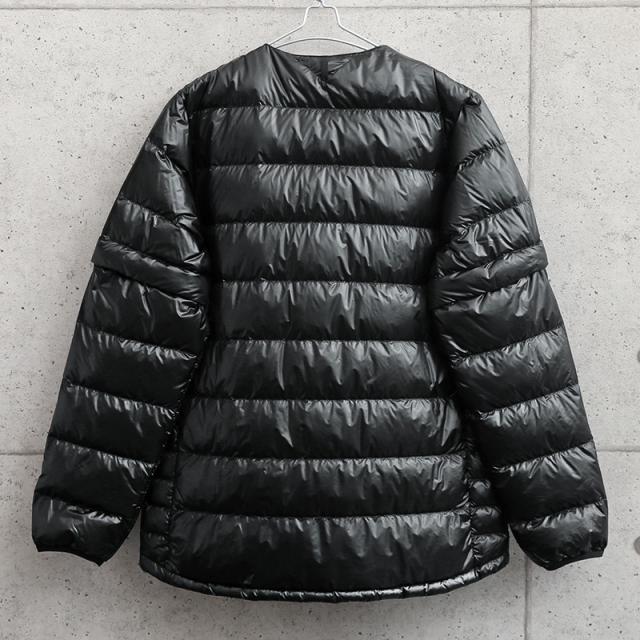 見た目やシルエットを大幅に変えながら、細かな温度調整可能が可能で、シーンやシーズンに合わせてコーディネートいただけるモデルになりました。リサイクルダウンを使用したエコフレンドリーモデルです。暖かさを保ち、腕に適度にフィットし、冷気の侵入を防ぎます。