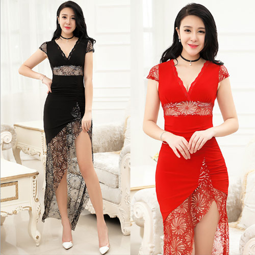 送料無料「沖縄、離島の方は除外です] 高級金糸レース素材アシメ前スリット袖付きセクシードレス