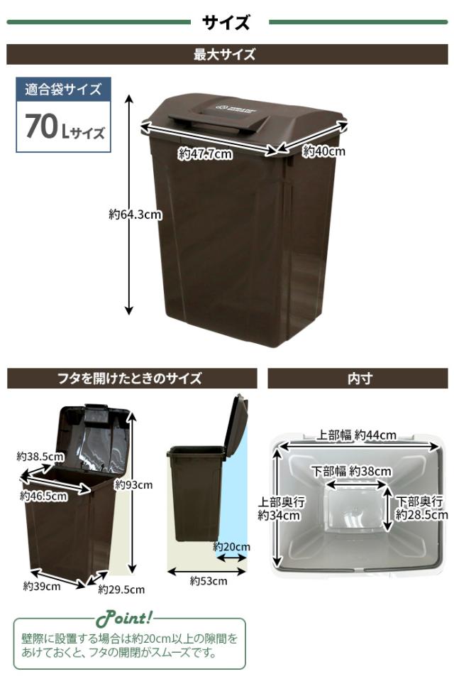 ゴミ箱 屋外 SPハンドル付 ダストボックス 70L ブラウン 同色2個セット A6727 | ごみ箱 おしゃれ 大容量 分別