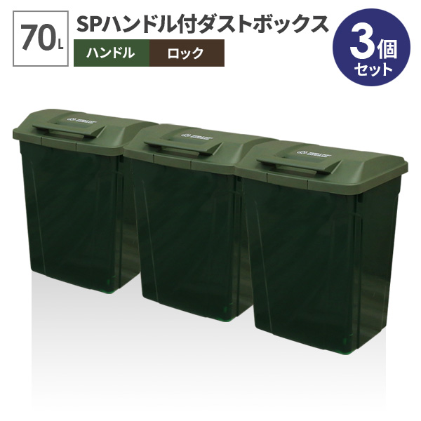 ゴミ箱 屋外 SPハンドル付 ダストボックス 70L グリーン 同色3個セット A6727 | ごみ箱 おしゃれ 大容量 分別