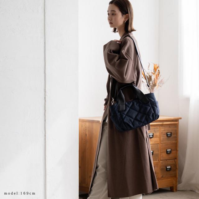 キルティング加工を施した丈夫な高密度ナイロンを使用し、上品で優しい雰囲気のバッグに仕上げました。