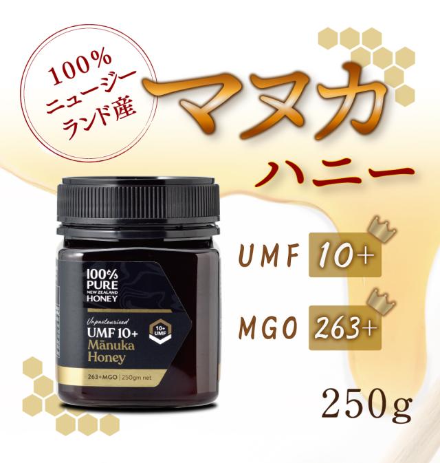 マヌカハニーUMF10+ 250g×1個 はちみつ 食品 食品 100%ニュージーランド産 マヌカハニー マヌカ蜂蜜 美容 健康 オリゴ糖 ビタミン ミネラル 無添加 抗菌 抗菌成分 抗生物質不使用 パン ヨーグルト k紅茶