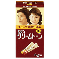 ビゲン クリームトーン染めにくい部分にもしっかりなじみます!!『ビゲン クリームトーン3Gより明るい栗色』 「ビゲン クリームトーン 」は、部分染めやリタッチに便利な、明るい白髪染めです。のびがよくムラもないクリームタイプ。タレ、飛び散りが少なく、生え際やうなじなど、染めにくい部分にもしっかりなじみます。クシ通りがよくしっとりとしたしなやかな染め上がり。女性にも男性にもご使用いただけます。医薬部外品。区分:医薬部外品【ビゲン クリームトーン3Gより明るい栗色 詳細】原材料など商品名ビゲン クリームトーン原材料名有効成分:5-アミノオルトクレゾール、塩酸2.4-ジアミノフェノキシエタノール、α-ナフトール、パラアミノフェノール、パラニトロオルトフェニレンジアミン、パラフェニレンジアミン、メタアミノフェノール、レゾルシン、過酸化水素水その他の成分:HEDTA・3N