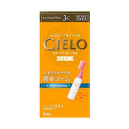 シエロ ヘアカラーEX ミルキー3Cキャラメルブラウン落ち着きのある洗練された印象に仕上がります!!シエロ ヘアカラーEX ミルキー3Cキャラメルブラウン『シエロ ヘアカラーEX ミルキー3Cキャラメルブラウン』 「シエロ ヘアカラーEX ミルキー3Cキャラメルブラウン」●やさしいフローラルの香り●早染め乳液タイプ●赤みをしっかりおさえた色味で、落ち着きのある洗練された印象に仕上がります。●白髪をしっかり隠しながらおしゃれな髪色を楽しめます。●3つの天然ツヤ成分※1と2つのケア成分※2で、自然なツヤを感じる美しい髪色に。※1:グレープシードオイル、ユーカリオイル、月見草オイル(毛髪保護成分)※2:海洋コラーゲン(うるおい成分)、機能性アミノ酸(毛髪保護成分)●コーム一体型ボトルで、片手で髪をとかすだけで、手早くムラなく染められる乳液タイプ。●二重構造ボトル※を採用し、どん