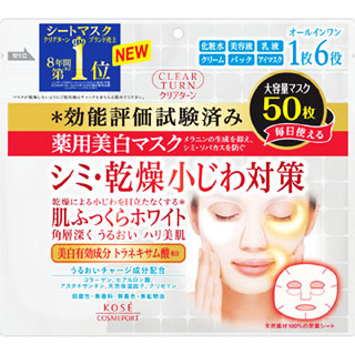 【クリアターン 薬用美白 肌ホワイト マスク 50枚入 詳細】