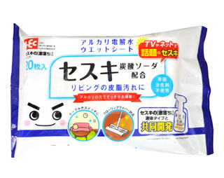 アルカリ電解水とセスキ炭酸ソーダを配合したウェットシート。