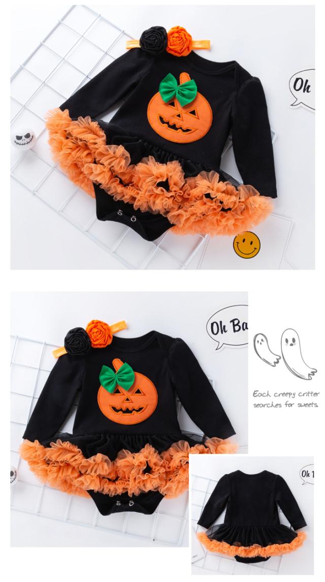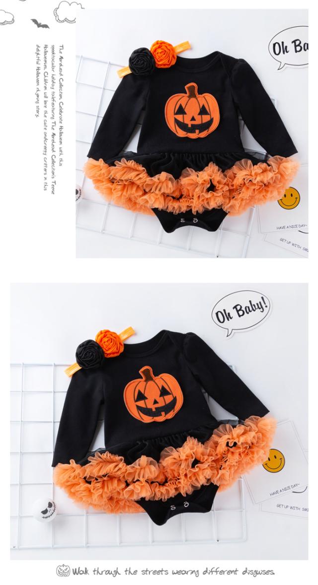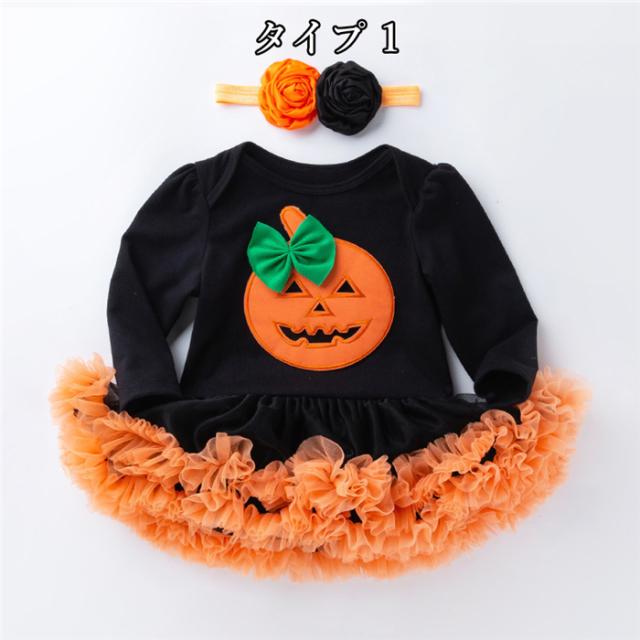 2点セット 新生児 女の子 ベビー 赤ちゃん かぼちゃスモック ハロウィン仮装 ベビー用 衣装 変装 イベント 文化祭 学?祭 コスチューム 着ぐるみ オレンジ 幼稚園 保育園 テーマパーク コスプレ