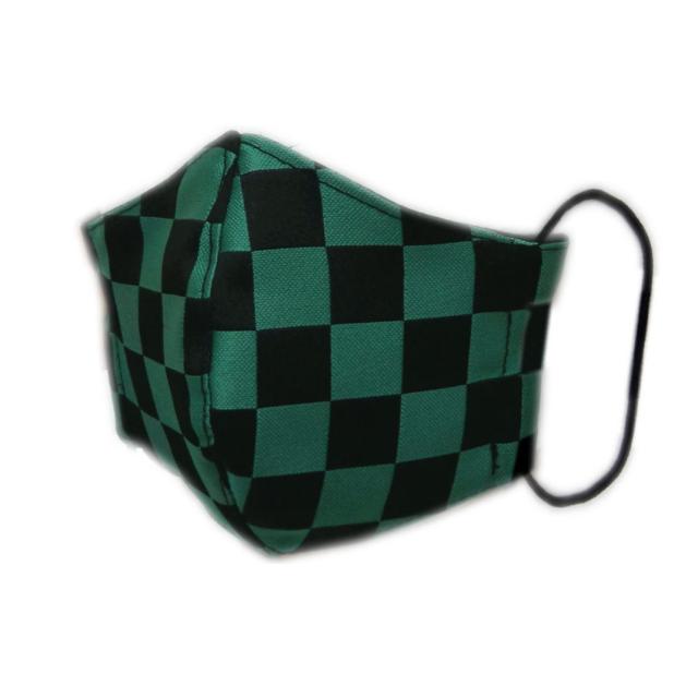 布マスク 子供用 金襴 和柄 洗える 緑黒市松 日本製 1枚入 抗菌・抗ウイルス加工 S 鬼滅の刃風 キッズ